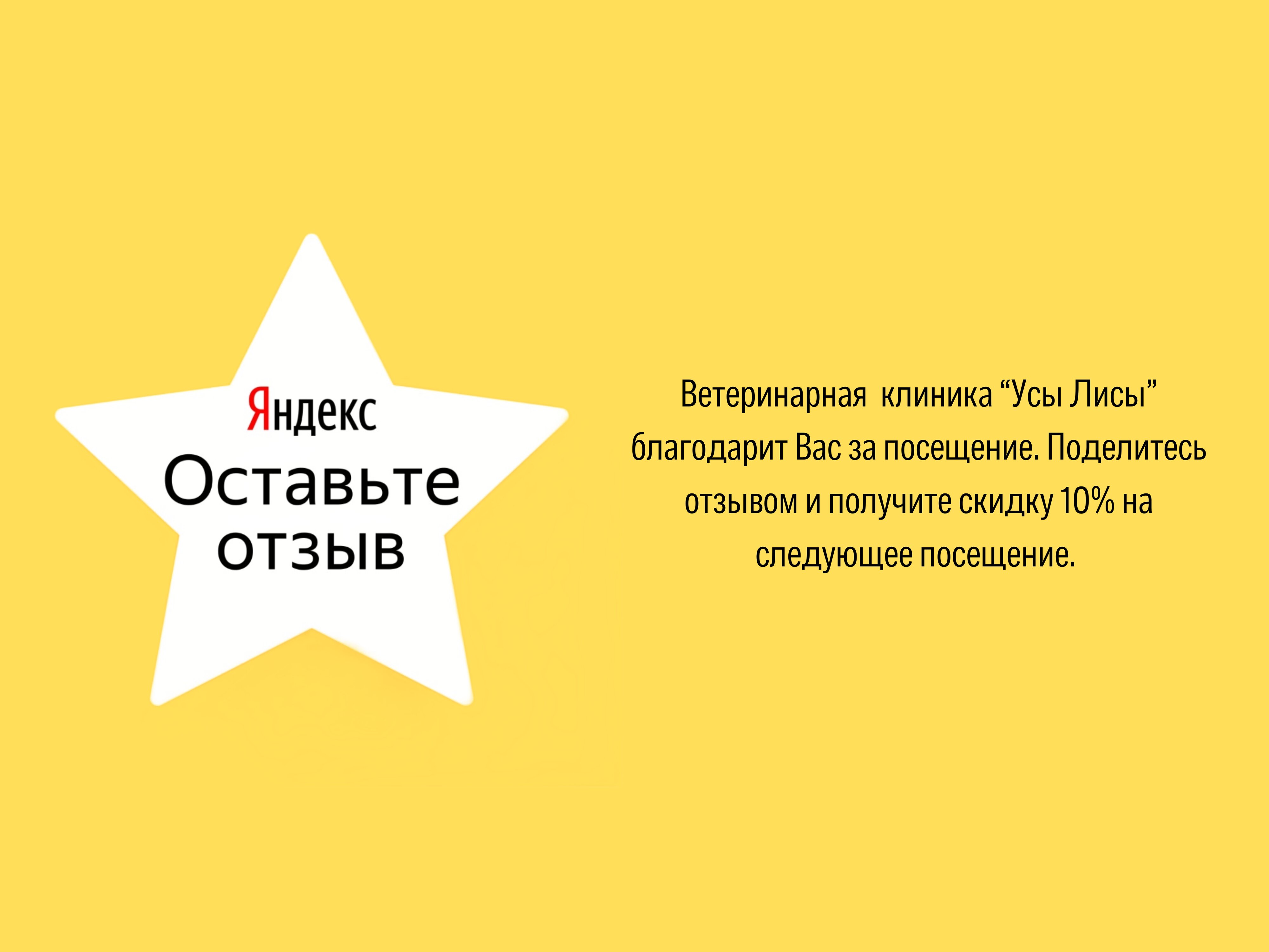Я очень благодарна специалистам, которые нас принимали! Сотрудники регистратуры вежливо общались и сразу пригласили к доктору. На приёме ветеринар уже была проинформирована о проблеме и возрасте кошки. Очень быстро и профессионально оказала помощь, несмотря на то, что было очень сложно. Все рекомендации, которые она выписала, были выданы в понятной и доступной форме. Медикаменты для питомца сразу были предложены и собраны. Также меня приятно удивила чистота клиники. Даже лестницы были хорошо убраны. Ещё мне предоставили скидку, как пенсионеру. У меня сейчас 5 животных, буду водить их только в Усы Лисы.