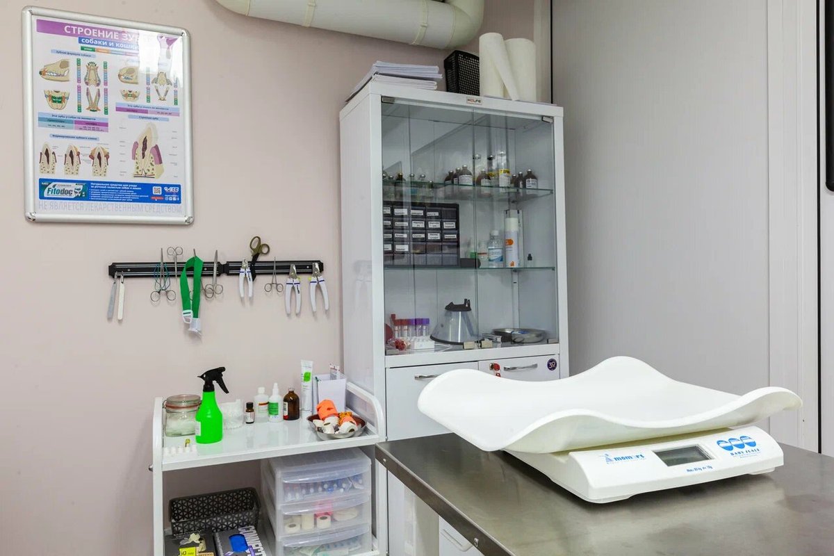 Внутри клиники очень приличное убранство, в кабинете не имелось посторонних запахов, было чисто. С собачкой мы специально приезжали к врачу, который провёл осмотр и рекомендовал подождать, понаблюдать, как будут развиваться события. Обратила внимание на то, что доктор спокойно общался с питомцем и умело с ним обращался.